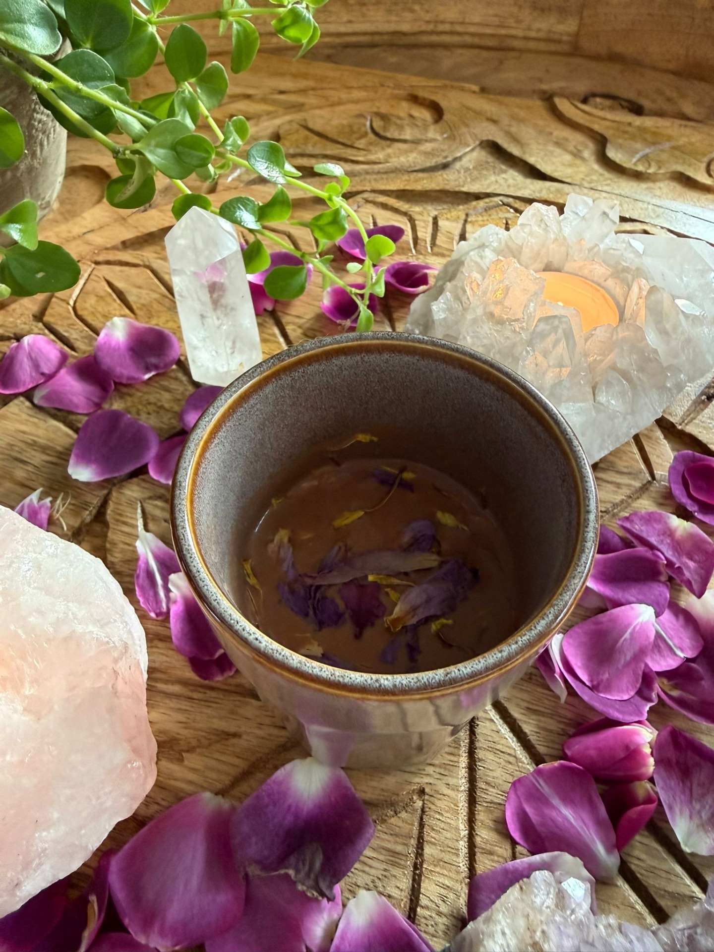 Tijdens de ceremonie openen we ons hart met cacao en verbinden we ons met de helende kracht van de Blauwe Lotus.